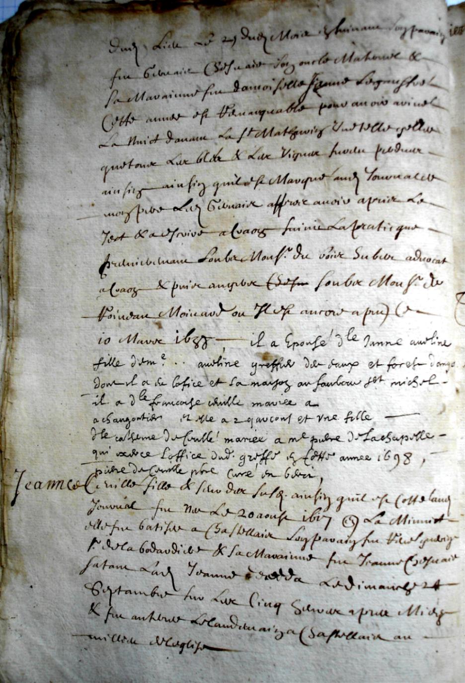 journal fut née le 20.8.1617 vers la minuit. Elle fut baptisée à Châtelais.