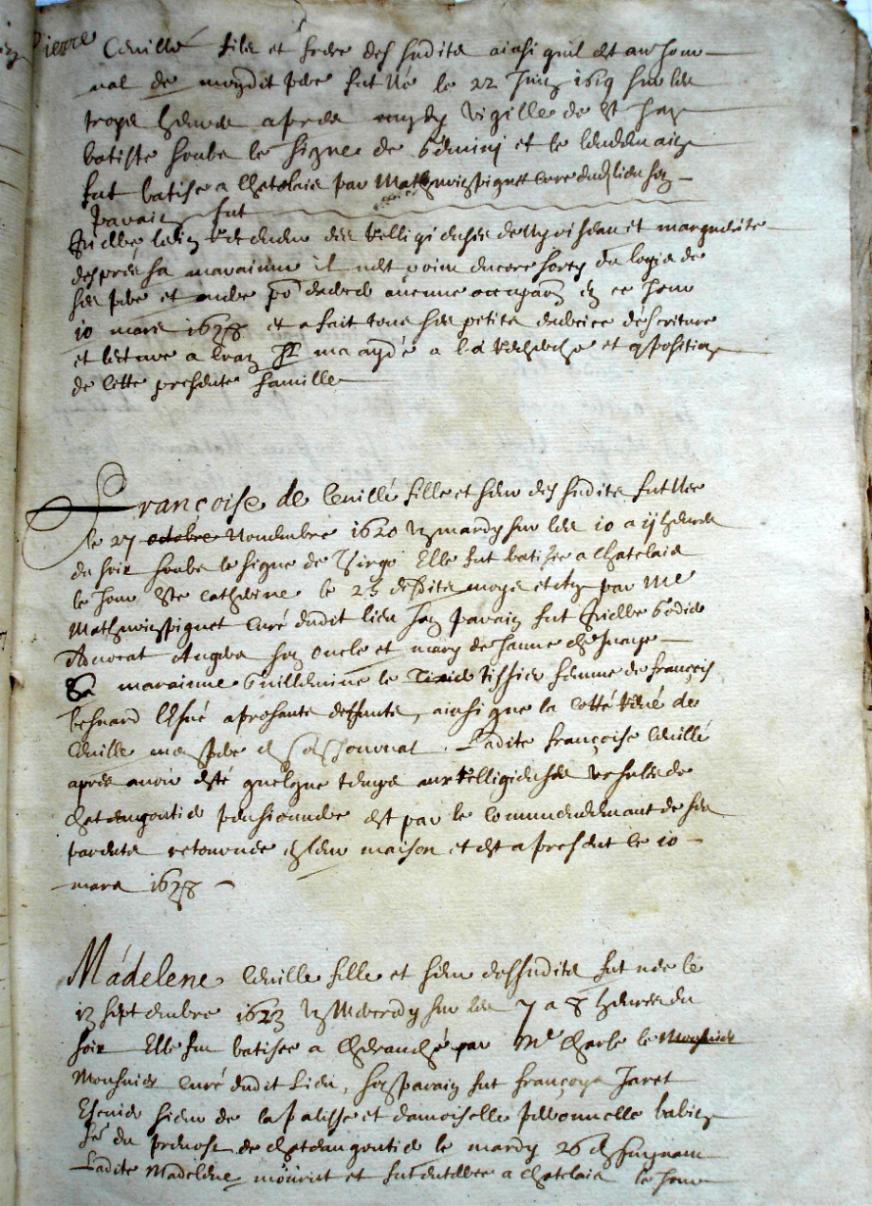 Cevillé, fille et sœur des susdits fut née le 13.9.1623 un mercredi