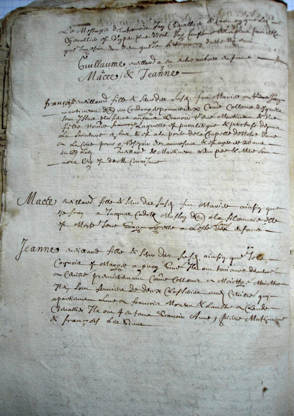 Eveillard a eu entre autres enfants Françoise, Macée et Jeanne