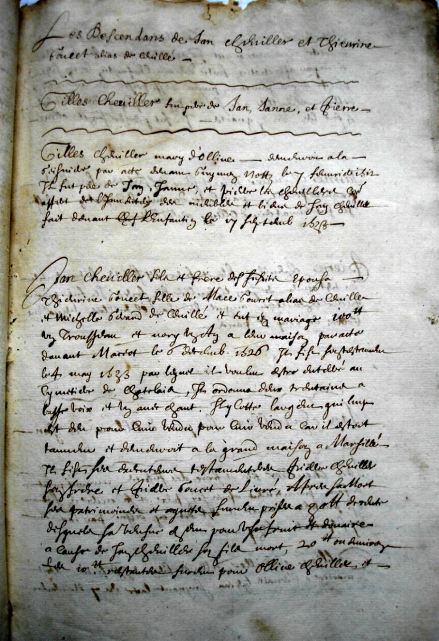 descendants de Jean Cheviller et Thieurine Goucet alias de Cevillé