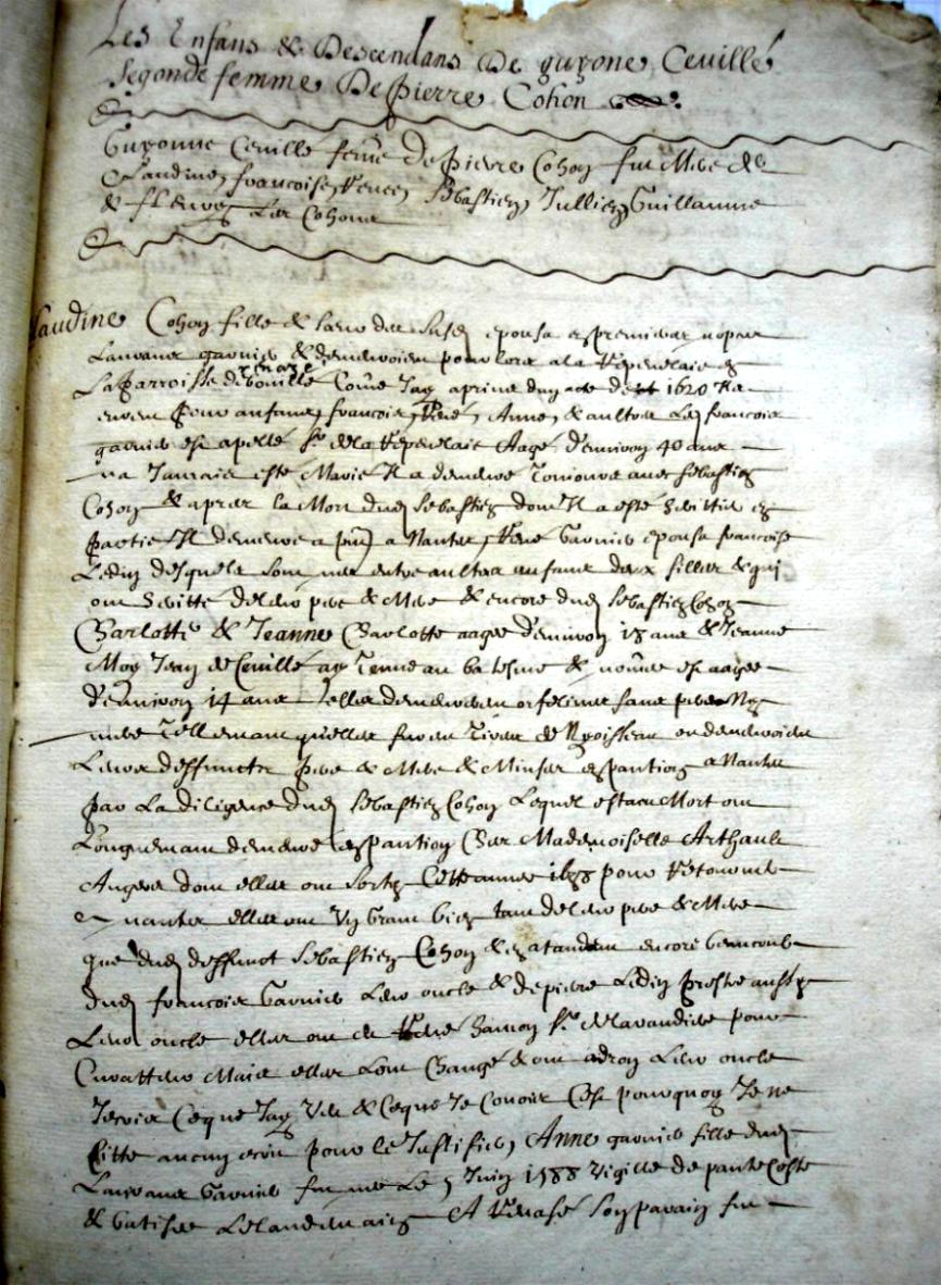 enfants et descendants de Guyonne Cevillé segonde femme de Pierre Cohon.