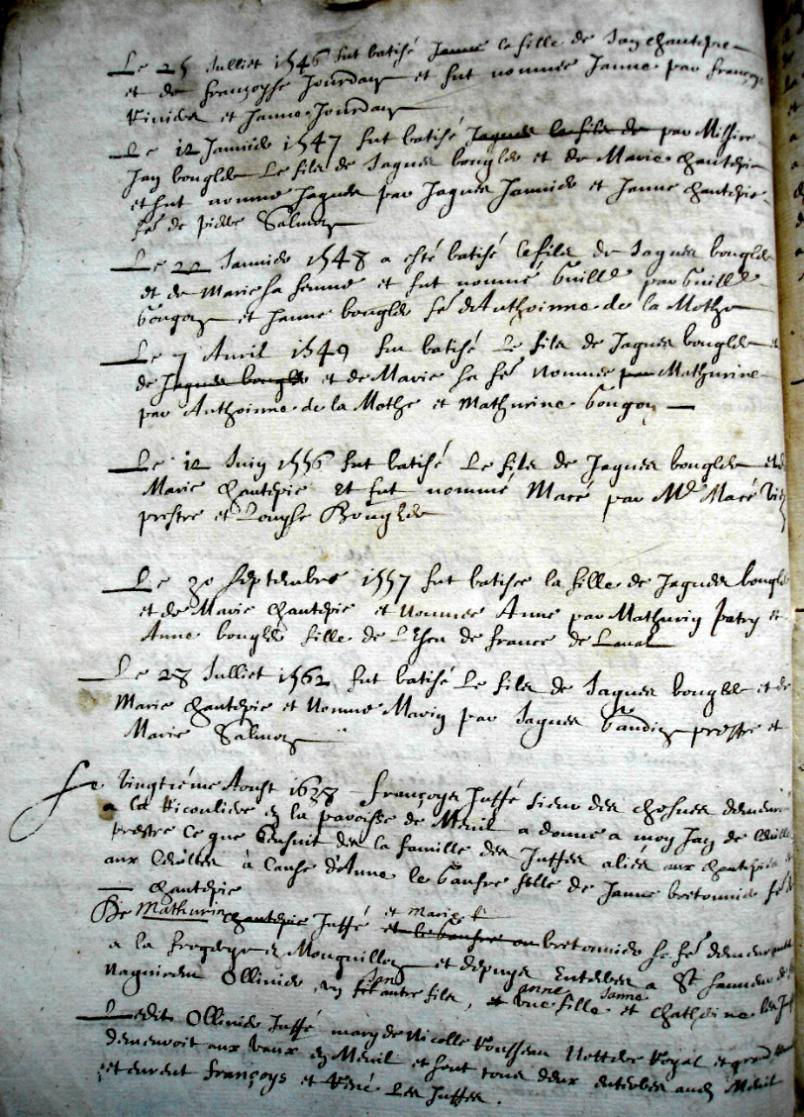 28.7.1562 fut baptisé le fils de Jacques Bougler et de Marie Chantepie
