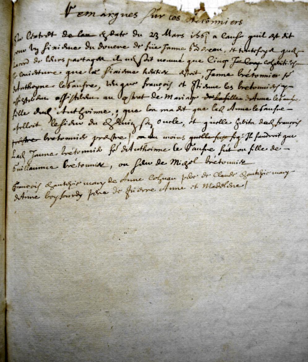 Le Gaufre fut ou fille de Guillaume Bretonnier ou soeur de Michel Bretonnier