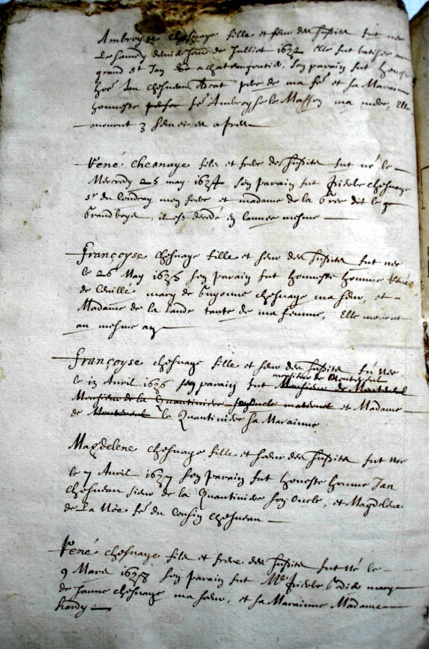 Chesnaye fille et sœur des susdits fut née le 26.5.1635. Son parrain