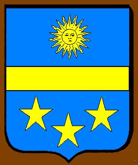 une fasse d’or accompagnée en chef d’un soleil & en pointe de 3
