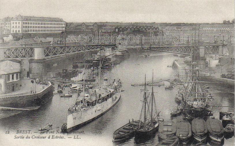 Brest, le Pont National ouvert, sortie du croiseur d'Estrées
