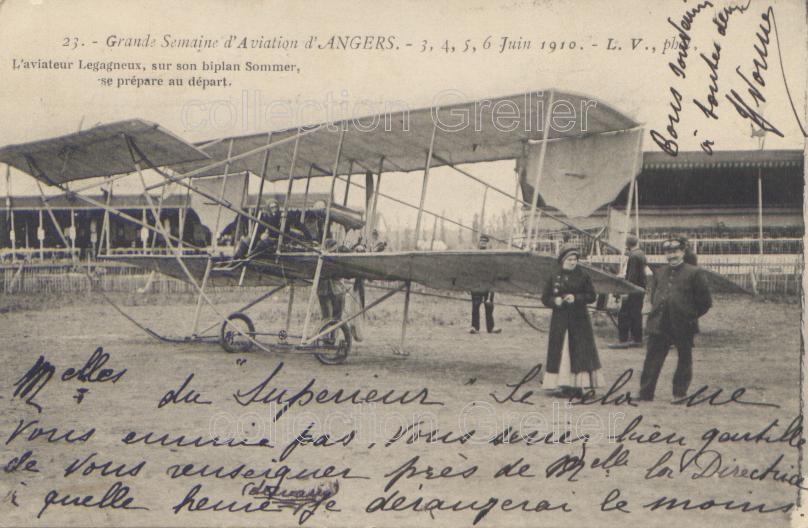Angers, aviation, 1910 : Legagneux sur son biplan Sommer
