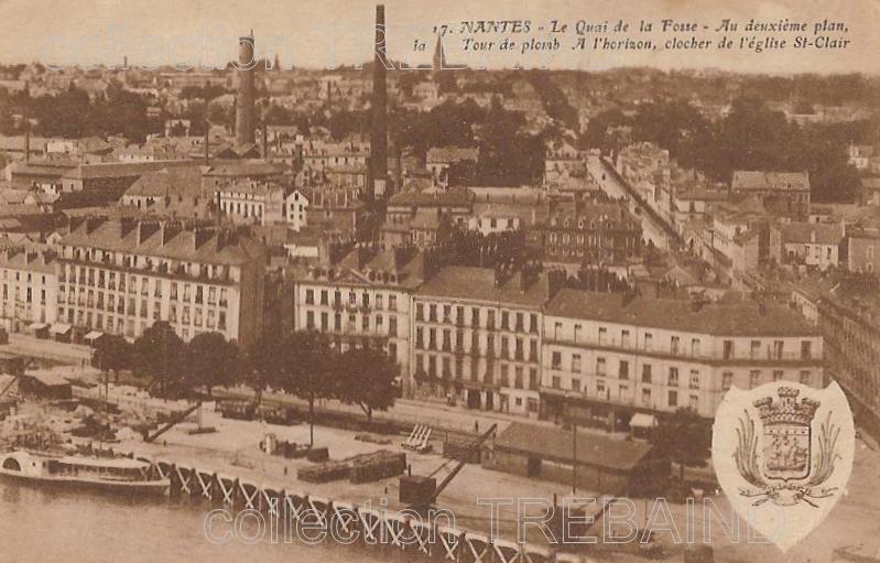 Nantes, le quai de la Fosse, au deuxième plan la tour de plomb, à l'horizon clocher de l'église St-Clair