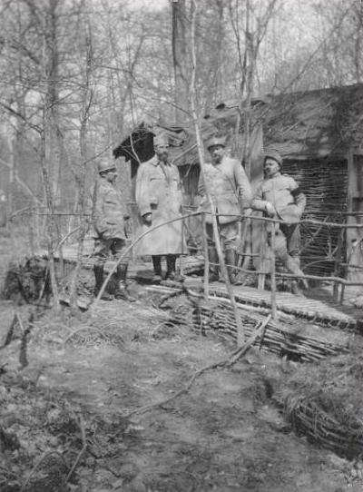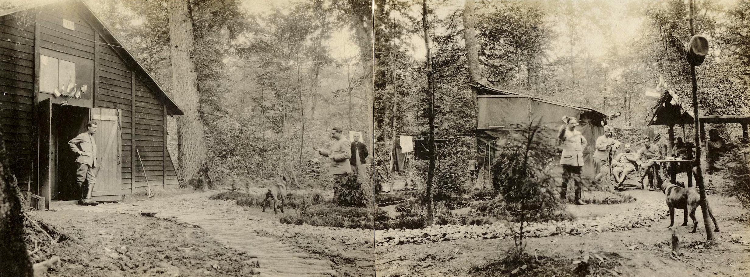 [Montauville : la maison du père Hilarion dans le Bois le Prêtre Carte postale envoyée par Edouard : « le Bois le Prêtre se trouve à quelques km de Pont-à-Mousson, sur la crête d’une colline, c’est un point qui commande la vallée de la Moselle, aussi ça été chaudement disputé pendant de longs mois, en ce moment c’est calme, mais les arbres n’ont pas repoussé , ceux qui restent sont à l’état de poteaux télégraphiques »]