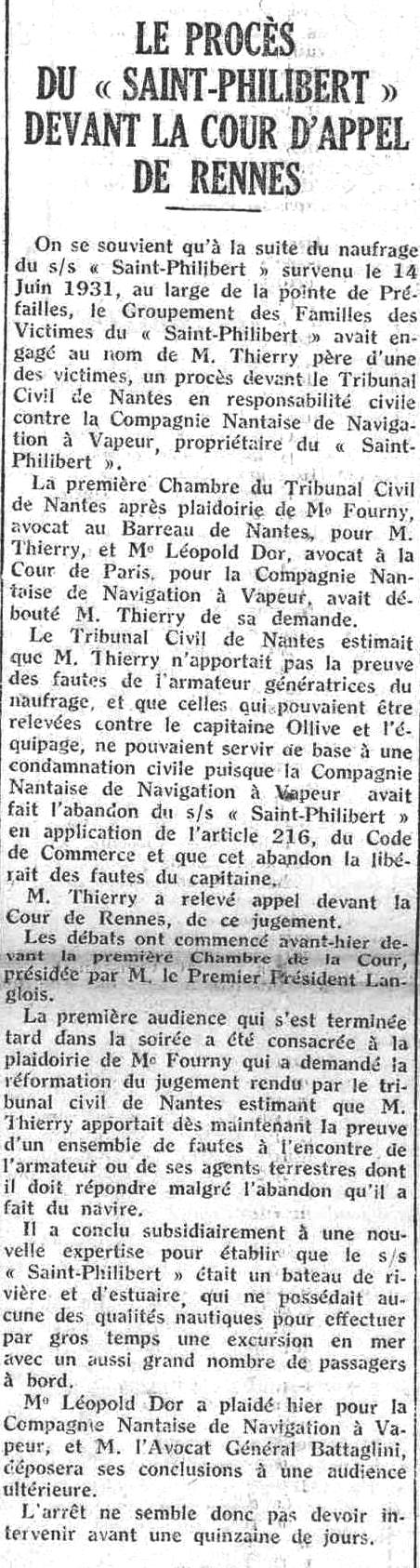 Malgré une certaine lucidité en cour d’appel : « le Saint-Philibert était un bateau de rivière et d’estuaire, qui ne possédait aucune des qualités nautiques pour effectuer par gros temps une excursion en mer avec un aussi grand nombre de passagers à bord »