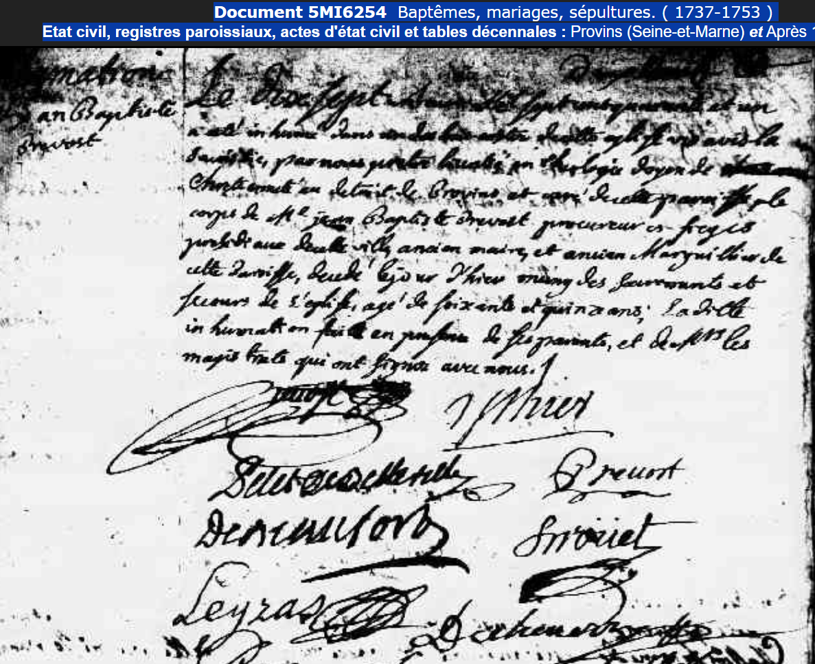 J’ajoute qu’à cette époque, la ville de Provins avait un maire annuel, et je ne sais quelle année ou quelles années Jean Baptiste Prevost fut maire de Provins, car l’ouvrage sur Provins ne donne que ceux qui ont suivi 1789