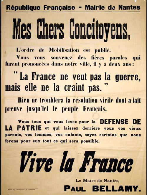 1er août 1914 samedi – La mobilisation est proclamée dans les rues de Nantes