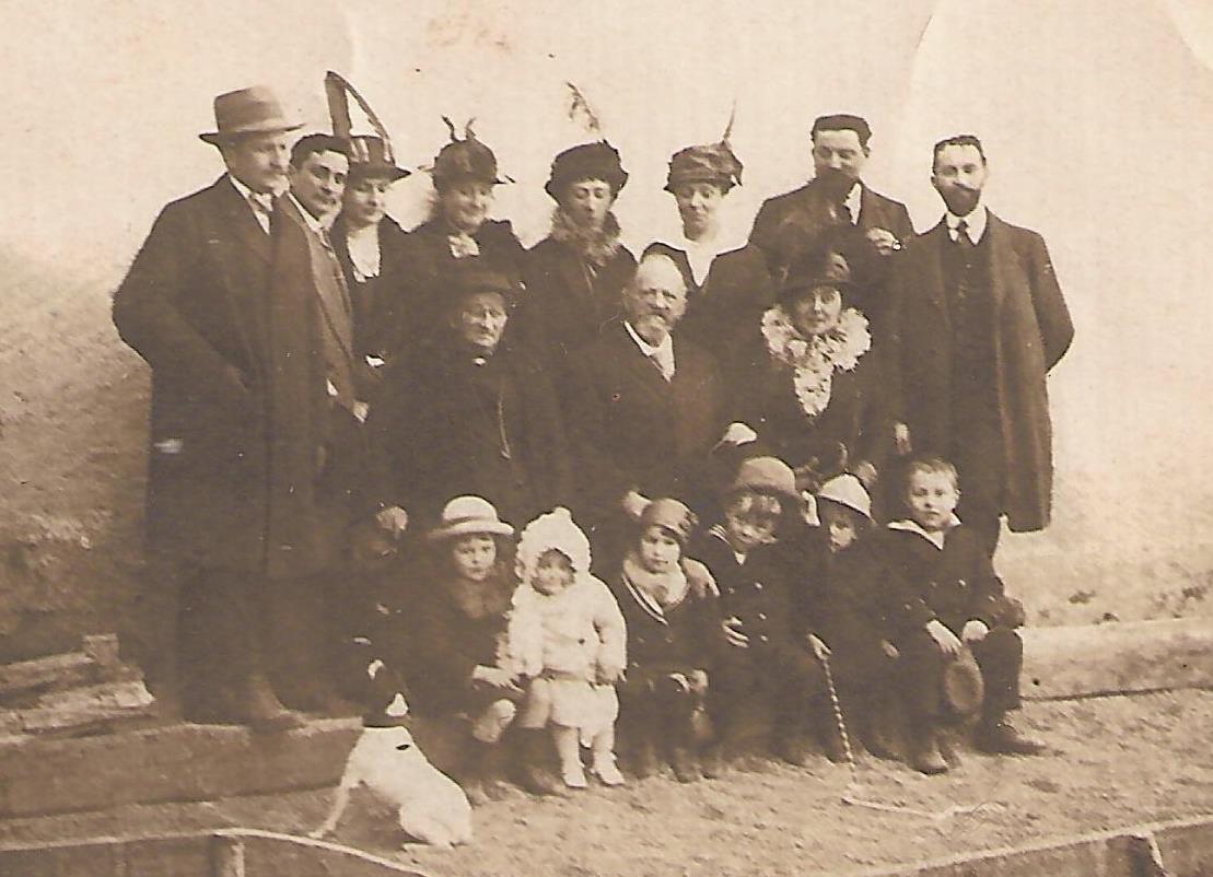 9.8 dimanche – Dévotion. Déjeuner chez les parents. [déjeuner tous les dimanches chez les parents des 5 fils et leurs épouses. C’était la coutume dans la famille Guillouard, et la mère d’Edouard, née Grelet, était une maîtresse femme, qui commandait son mari et ses 5 fils, y compris à table – la photo ci-contre est la dernière avant le départ d’Edouard et Joseph au front, il vient de se marier et va mourir dès le début de la guerre. Appareil photo d’Adrien Guillouard, le créatif-inventeur qui a déjà créé avec son frère Louis l’usine de fer blanc ALG – Double cliquez toutes les photos pour les agrandir car elles sont très précises et grandioses] Visite du cantonnement