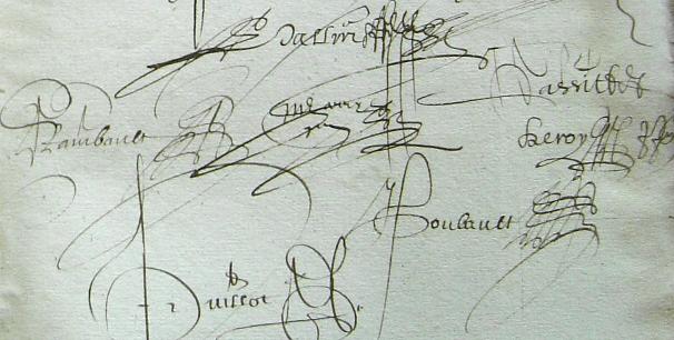 fait à Angers en nostre tablier présents Me Richard Leroy et Maurice Jarry Sr de Lansonnière advocats, René Raimbault et Pierre Goubault demeurant audit Angers tesmoins
