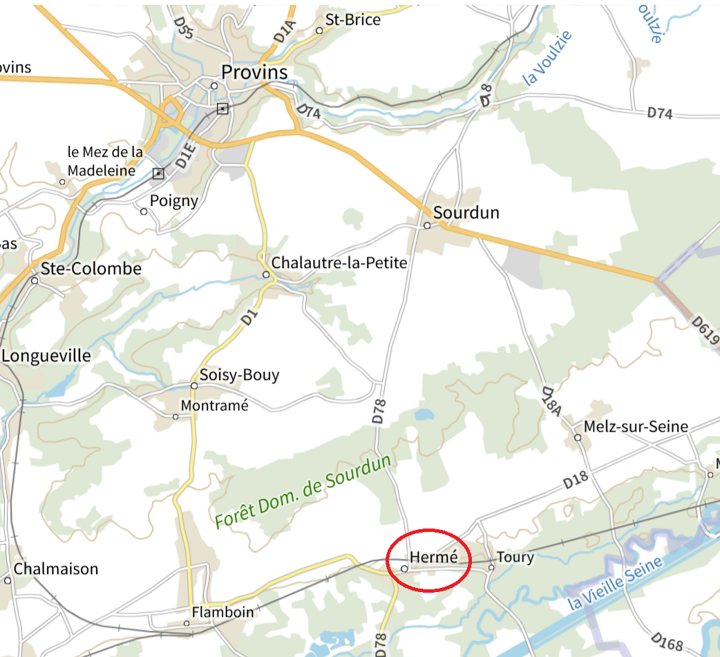 Hermé est situé au sud de Provins, à aller vers la Seine.