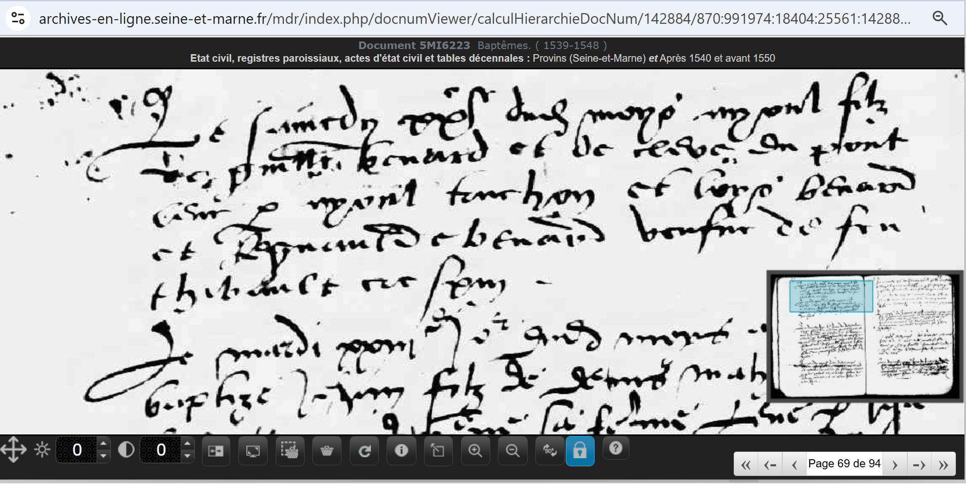 « Provins Ste Croix samedi 20 novembre 1546 Ayoul filz de Guillaume  Benard et de Clere Dupont levé par Ayoul Truchon et Loys Benard et Regnaulde Benard veufve de feu Thibault Crespin »
