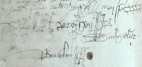 J’ai trouvé l’acte qui suit est aux Archives du Maine-et-Loire, série 5E7 – Voici ma retranscription : Le 30 mars 1610 en la court royal d’Angers endroict par davant nous Jehan Bauldry notaire royal à Angers personnellement establiz vénérable et discret Me Maurice Hamelin prêtre diacre en l’église d’Angers et chapelain de la chapelle St Michel aliàs de la Mazure fondée et desservie en l’église paroissiale de Juvardeil demeurant en la cité de ceste ville d’une part