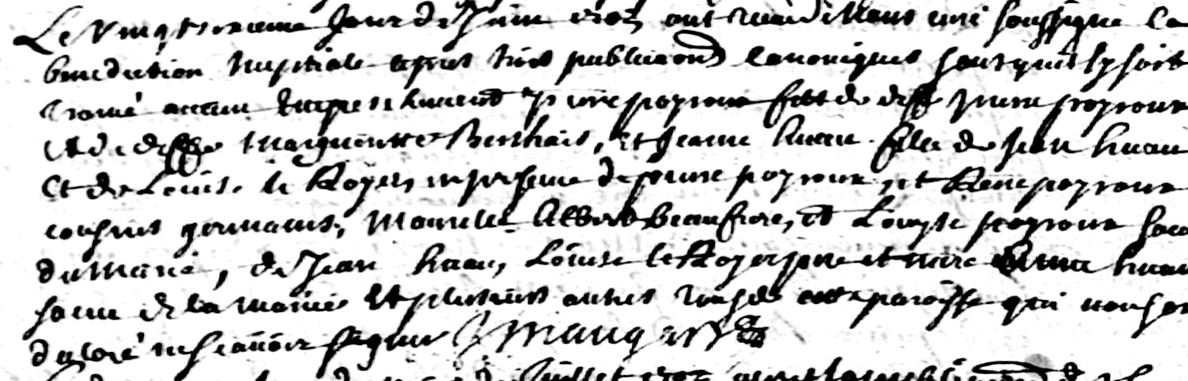 Lorque Pierre BESSONNEAU °Saint-Clément-de-la-Place 1er avril 1736 †StClément 31 juin 1771 Fils de René BESSONNEAU et Jacquine POIROUX épouse à Saint Clément-de-la-Place le 26 juin 1764 Perrine CRUBLEAU, il ne sait pas signer, pas plus que son père, pas plus que son fils ne le saura en épousant à Saint-Clément-de-la-Place le 7 ventôse an II (25 février 1794) Marie CARMET.