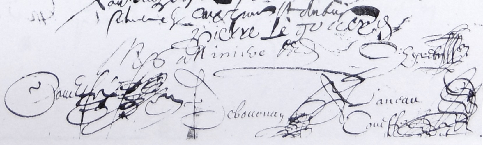 fait et passé audit Angers à notre tabler présents honorables hommes Me René Hamelin et Laurent Gault licencié ès droits advocats audit siège présidial et Me Louis Pechin et Me René Deshaies praticiens demeurant audit Angers tesmoings