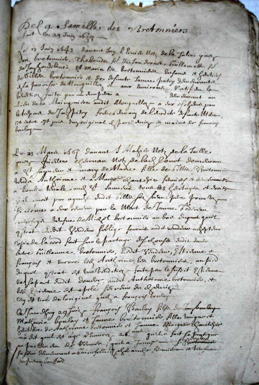les Bretonniers enfants et héritiers de Gilles Bretonnier et de dé-functe