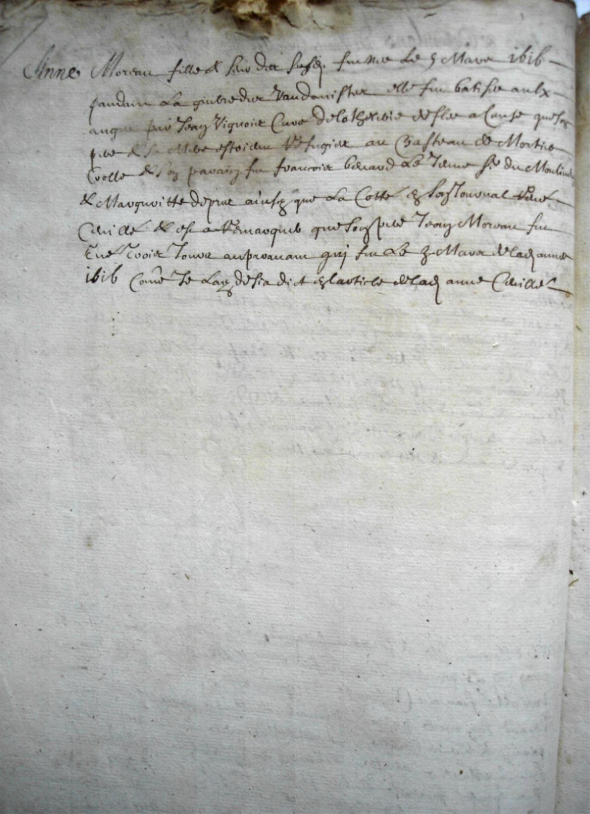 Moreau fille de Anne de Cevillé et Jean Moreau, fut née le 5 Mars