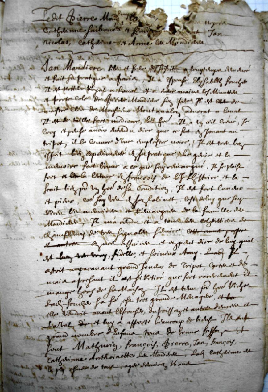 Mondière fils et frère des susdits a longtemps demeuré et fait