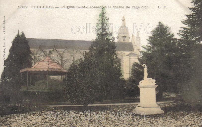 Fougères, église St Léonard et la statue de l'âge d'or