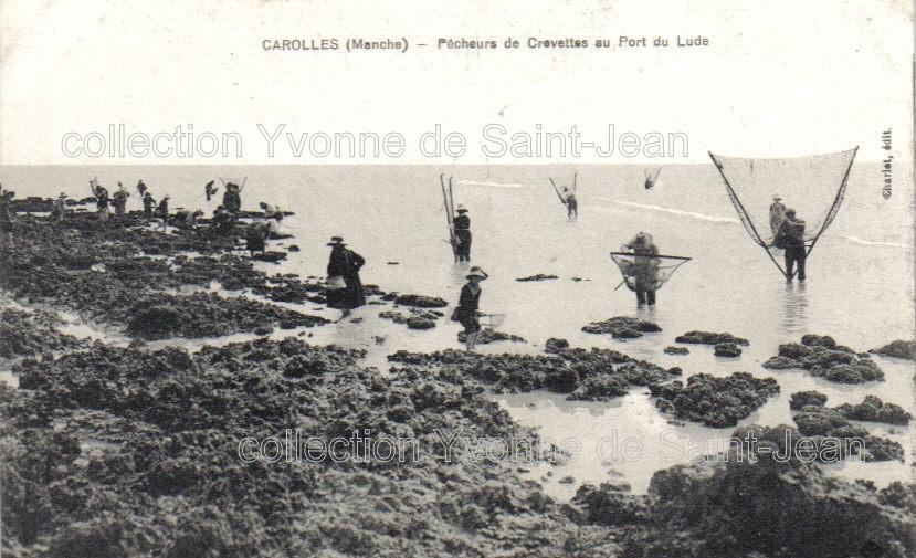 Carolles, pêcheurs de crevettes au port du Lude