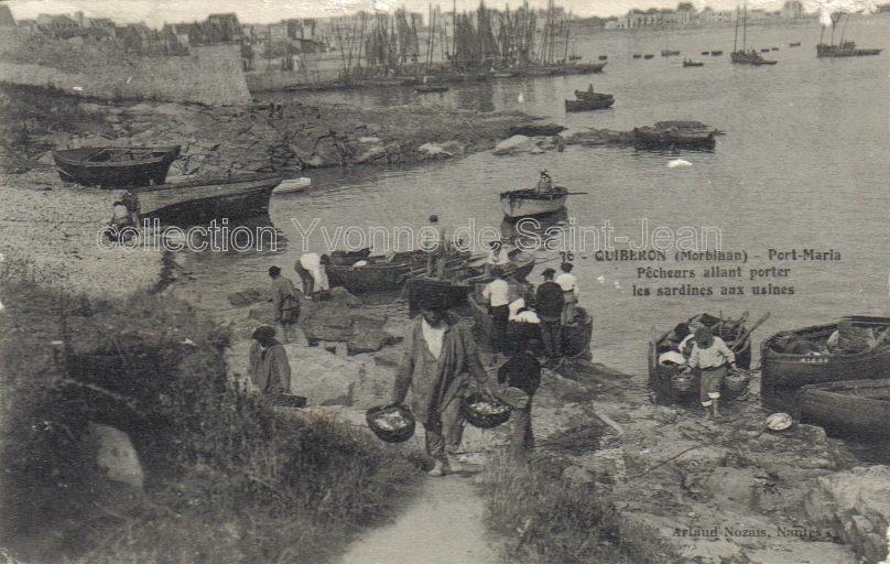 Quiberon, Port Marie, pêcheurs allant porter les sardines aux usines