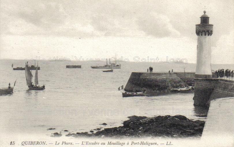 Quiberon, le phare, l'escadre au mouillage à Port-Haliguen