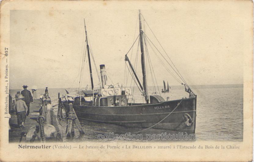 Noirmoutier, la bateau de Pornic " le Bellilois " amarré à l'estacade du bois de la Chaize