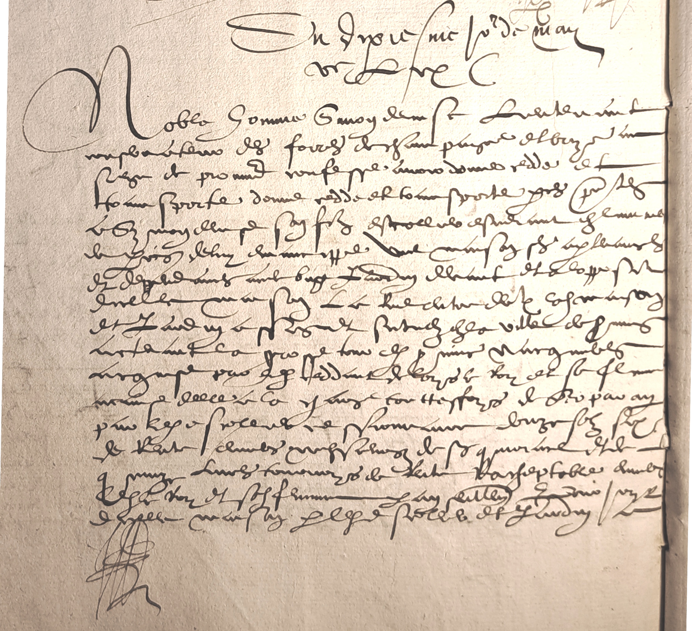| 1617.05.21 vue 5 – Jehan Moreau laboureur demeurant à Landoy ? lequel de son bon gré recongnut debvoir et promys payer à honorable homme Gaspart Lecourt capitaine ordinaire du charroy de l’artillerie de France demeurant à Provins présent ou au porteur la somme de 105 livres tournois pour vente et délivrance à luy faicte ce jourd’huy d’un cheval soubz poil noyr |