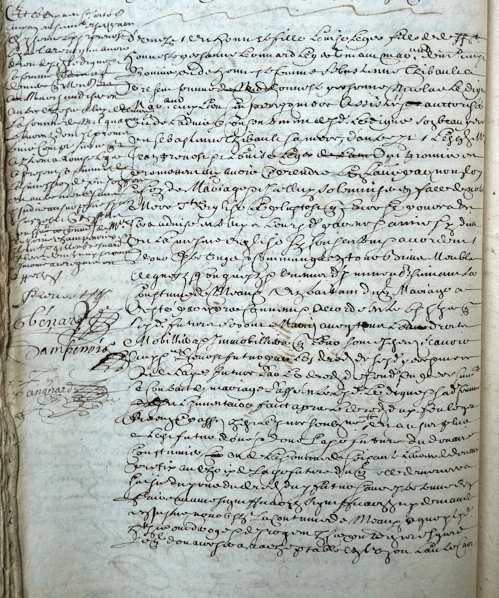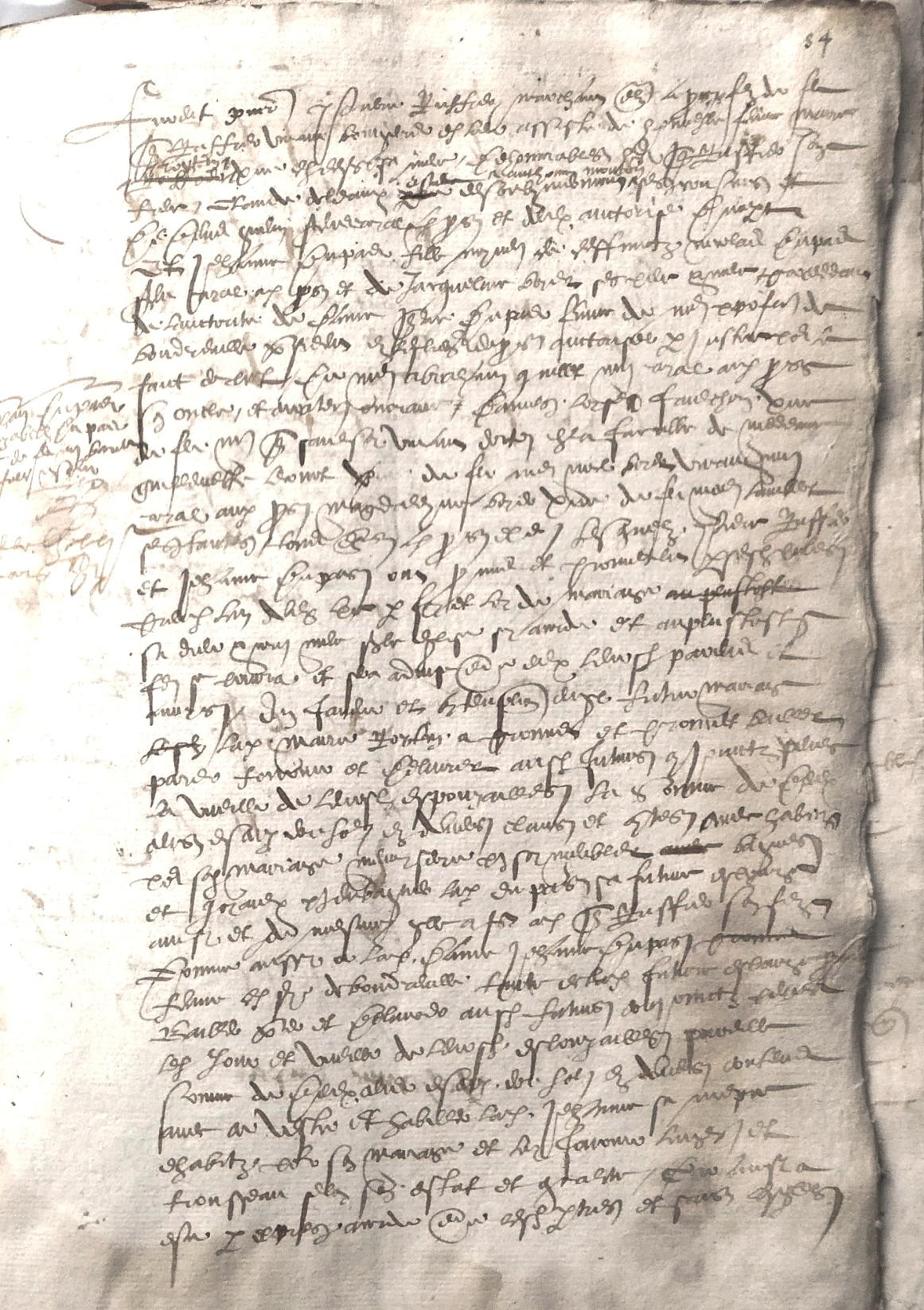 « Un petit livre de papier sur 9 feuillets duquel sont escripts les prests qui ont esté faits à plusieurs particuliers ainsi qu’il ensuit : 20 mai 1669 ledit deffunct Lancellot avoit presté au nommé Pierre Mignot de Sepveille 6 boisseaux de mestail mesure de Racle qu’il doibt rendre à pareille mesure – Au nommé Nicolas Ribost du Melz la Magdeleine (f°21 vue 676) le 15 dudit mois et an a esté presté 8 boisseaux de mestail à rendre en nature – Le 17 dudit mois a esté presté à Gabriel Goijat de Sepveille 4 boisseaux de mestail à rendre en nature – Le 22 dudit mois a esté presté encore audit Nicolas Ribost dudit Melz la Magdeleine 8 boisseaux mestail – Le 23 dudit mois jour et an a esté presté audit Pierre Mignot 6 boisseaux de mestail – Le mesme jour a esté presté à Pierre Camuset demeurant à (blanc) 8 boisseaux de mestail mesure Main torse à raison de 12 sols le boisseau sur quoy il a fait des voyages et labourages – A esté encore presté 60 sols sur quoy et il a fait des voyages et labourages – Le 30 dudit mois a esté encore presté aidot Nicolas Ribost du Melz la Magdeleine 8 boisseaux mestail – Le mesme jour et an a esté encore presté audit Gabriel Goijat 4 boisseaux de mestail – le 5 juin audit an a esté presté à Pasquier Hatton demeurant à Sepveille 3 boisseaux froment et 3 boisseaux mestail – Le 6 juin a esté presté à Simon Pigot de Sepveille 6 boisseaux de mestail main torse à raison de 12 sols le boisseau – Sur quoy a esté receu 30 sols le 28 – Le 18 juin a esté presté au nommé Charles Baudin de Sepveille 3 boisseaus mestail – Le 10 juin a esté presté à la veufve Gabriel Boucher 5 boisseaux mestail (f°22 vue 677) – Le 11 dudit mois de juin a esté presté audit Nicolas Ribost 8 boisseaux mestail – Ledit 11 juin a esté presté audit Pierre Mignot 6 boisseaux mestail – Le 13 juin a esté presté audit Gabriel Gorjat 4 boisseaux de mestail – Le 15 juin a esté presté à Henry Larivière de Sepveille 5 boisseaux de mestail – Le 17 dudit mois de juin a esté presté audit Pasquer Hatton 6 boisseaux de grain et 3 de froment et 3 de mestail – Le 18 dudit mois a esté presté à la veufve Gabriel Boucher demeurant au Melz la Magdeleine un boisseau de mestail – Ledit jour 18 juin a esté presté audit Nicolas Ribost 8 boisseaux de mestail y compris 2 boisseaux donnés à son vacher par son ordre et son acquit – Le 20 juin a esté presté à Jean Blondeau de Sepveille 4 boisseaux de mestail – Le 22 dudit mois de juin a esté presté à Maurice Baudin de Sepveille 3 boisseaux de mestail en l’acquit dudit Nicolas Ribost – Le 26 dudit mois de juin a esté presté à Michel Blondeau du Melz 8 boisseaux de grain scavoir 3 de froment et 5 de mestail y compris 3 boisseaux donnés en son acquit à son berger – Le 26 dudit mois de juin mesme jour et an a esté presté 2 boisseaux de mestail au berger du Melz la Magdeleine en l’acquit dudit Nicolas Ribost – Le mesme jour et an a esté presté 6 boisseaux de grain audit Pasquet Hatton scavoir (f°23 vue 678) 3 de froment et 3 de mestail – Le 27 dudit mois a esté presté audit Nicolas Rebost 8 boisseaux de mestail – Le 28 dudit mois de juin a esté presté audit Simon Pigot de Sepveille 4 boisseaux de grain scavoir 2 de froment et 2 de mestail – Le 29 dudit mois a esté presté à ladite veufve Gabriel Boucher du Melz la Magdeleine 2 boisseaux de mestail – Ledit jour 29 juin a esté presté à Nicolas Jeubert du Melz la Magdeleine 4 boisseaux de mestail de main torse à raison de 12 sols chascun boisseau – Le 1er juillet a esté presté à Michel Blandeau 2 boisseaux de mestail pour donner à son vacher – Le 4 juillet a esté presté audit Nicolas Ribison 8 boisseaux scavoir 3 de froment et 5 de mestail – Ledit jour 4 juillet a esté presté ausit Pasquirt Hatton 6 boisseaux de froment – Le mesme jour 4 juillet a esté presté à Jean Jacquenin 2 boisseaux de mestail – Le 8 juillet a esté presté audit Simon Pigot 4 boisseaux de mestail – Le 10 juillet a esté presté audit Michel Blondeau 8 boisseaux de grain scavoir 3 de froment et 5 de mestail – Le 11 juillet a esté encore presté audit Pierre Mignot un boisseau de mestail – Ledit jour 11 juillet a esté encore presté audit Pasquier Hatton 6 boisseaux de grain scavoir 4 de froment et 2 de mestail – (f°24 vue 679) Le 14,dudit mois de juillet a esté encore presté audit Nicolas Rebost 8 boisseaux de grain dont 3 de froment et 5 de mestail – Le 19 dudit mois a esté presté à ladit veufe Gabriel Boucher un boisseau de mestail – Le 22 dudit mois a esté presté audit Jean Blondeau 4 boisseaux de grain scavoir 2 de froment et 2 de mestail – Le 29 dudit mois a esté presté à Croisette femme demeurant au Melz un boisseau de mestail – A Charles Chappottot de Sepveille un boisseau de mestail main torse franc moulu de 12 sols – Le 30 juillet a esté presté à la veufve Billot du Melz un boisseau de mestail mai, torse franc moulu de 12 sols – Le 12 aoust a esté presté à la veufve Perné 6 boisseaux de bled froment et un de mestail – Le 23 avril 1670 a esté encore presté audit Gabriel Gorjat 4 boisseau de mestail – Au nommé Perné de Sepveille un boisseau de mestail à raison de 12 sols – Le 2 mai a esté presté à Potantien Blanot de Sepveille 4 boisseaux de mestail à 12 sols chascun – Le 9 mai a esté presté à Jacques Jorré de Sepveille 5 boisseaux de mestail – Le 17 mai encore audit Jorré 6 boisseaux de mestail – Le 19 mai a esté presté audit Potentien Blanot 4 boisseaux de mestail à (f°25 vue 680) 13 sols le boisseau franc moulu main torse – Audit Jean Blondeau 2 boisseaux de mestail à raison de 12 sols le boisseau – Le 21 juin a eté presté audit Patientien Blanot 4 boisseaux (f°25 vue 680) de mestail à raison de 13 sols le boisseau – Le 26 juin a esté presté à la veufve Jacques Fromont 2 boisseaux de mestail – Le 3