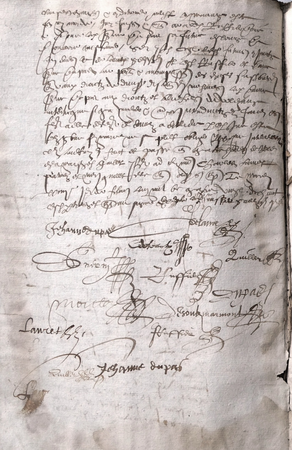 « Un petit livre couvert de parchemin sur 14 feuillets duquel sont escripts plusieurs mémoires et entre autres de quelques grains prestés à quelques particuliers de payements faictz à la thaille etc… »