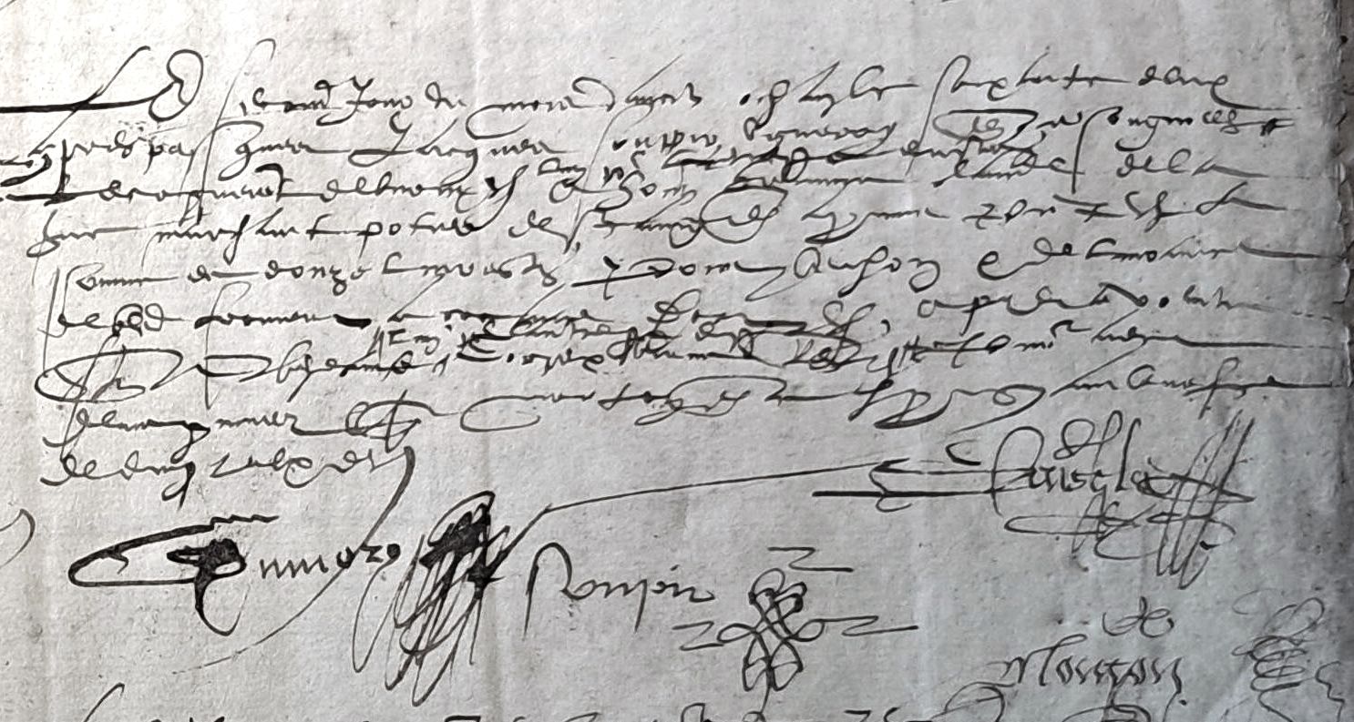 Jacquin Froment signe et même avec une magnifique fioriture, et je rencontre beaucoup de ces belles signatures. Ce qui signifie qu’à Villenauxe il y avait une école ou moyen d’aller à Provins. Les fioritures sont si élaborées et si fluides, qu’elles attestent un certain entraînement pour les exécuter correctement.