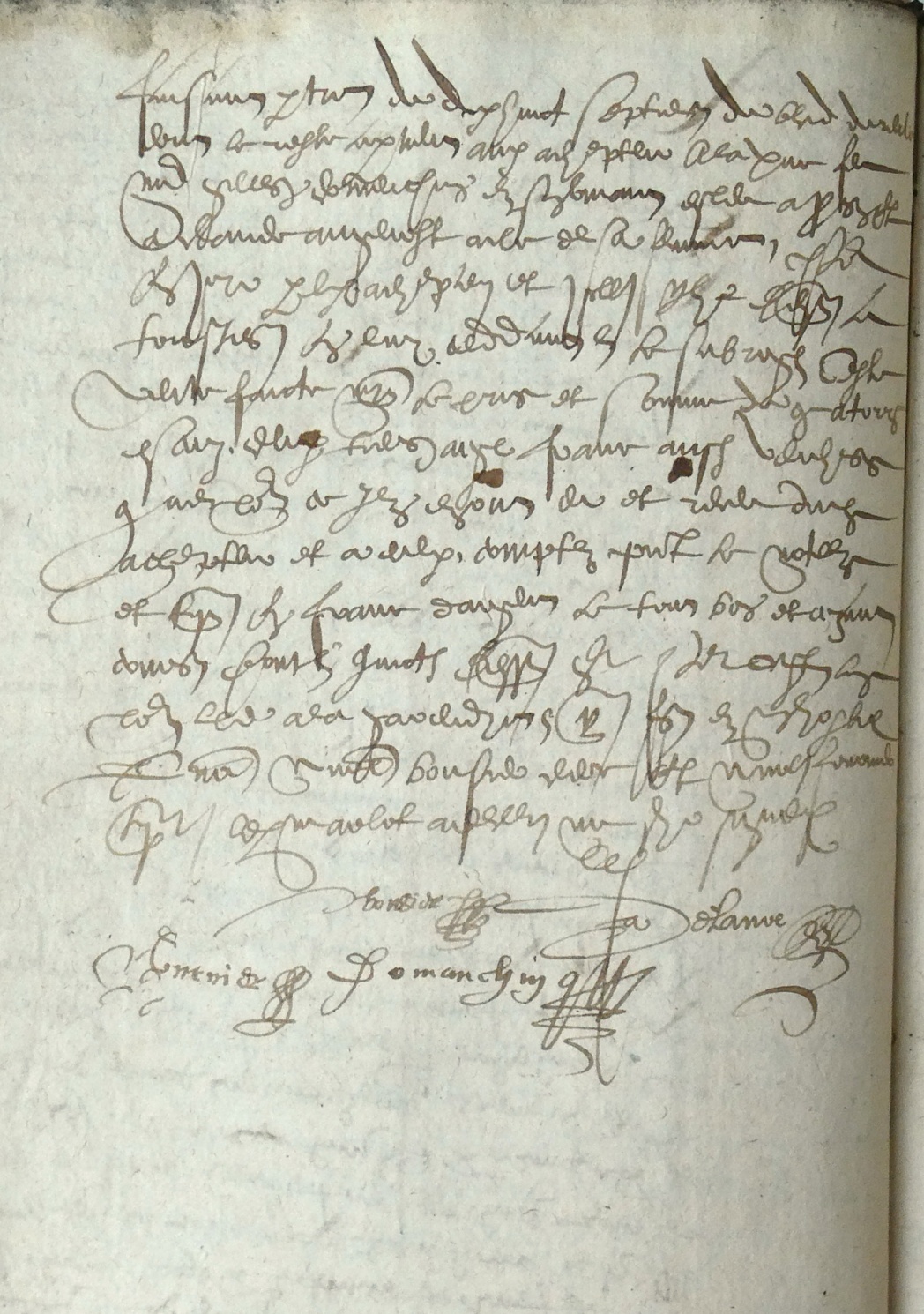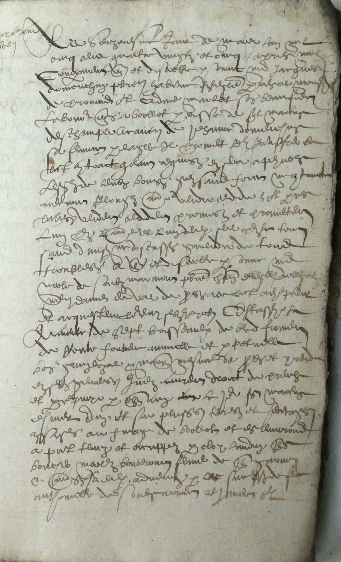 1585.03.16 vue 278 – comparurent vénérable et discrette personne Me Jacques Domenchin prêtre habitué en l’église parochial monsieur de Provins et Edmé Marlot son beau frère laboureur demeurant à Borllot paroisse de St Martin des Champs à cause de Jehanne Domenchin sa femme par laquelle il promet faire ratiffier leprésent contrat quant requis en sera lesquels de leurs bons grés sans force ni contrainte aulcune recognurent avoir vendu ceddé et par ces présentes vendent cèddent promis et promettent l’un pour l’autre et l’un d’eulx seul pour le tout sans division ne discussion garendir de tous troubles à vénérable et discrette personne Me Nicole de Soubzmarmont prêtre chanoine en l’église collégiale Notre Dame du Val de Provins à ce présent achepteur et acquesteur pour luy ses hoirs, c’est à  savoir la quantité de 7 boisseaulx de bled froment de rente fontière annuelle et perpétuelle bon grain loyal et marchand mesure de Provins et y rendu en ses greniers qu’ils avoyent droit de prendre et percepvoir par chacun an le jour st Martin d’hiver en et sur plusieurs terres et héritages assises au finage de Borllot et es environs à présent tenus et occupés par Eloy Baudry Jehan Boucher Marcelle Bouterny femme de Jehan Garnier et autres à eulx advenus par les successions de feu Anthoinette Desoubzmarmont … (f°2) faisant partie de 18 septiers de bled de rente dont le reste appartient audit achepteur à la veuve Me Gilles Domenchin en son vivant esleu à Provins et à Claude Angenost à cause de sa femme, pour en jouir par ledit achepteur et icelle rente prendre à toujours … Ceste vente faite moyennant le prix et somme de 14 escuz 2 tiers argent franc auxdits vendeurs qu’ils ont eu et receu  dudit achepteur et à eulx comptés par devant le notaire et tesmoins en franc d’argent le tout bon et ayant cours …