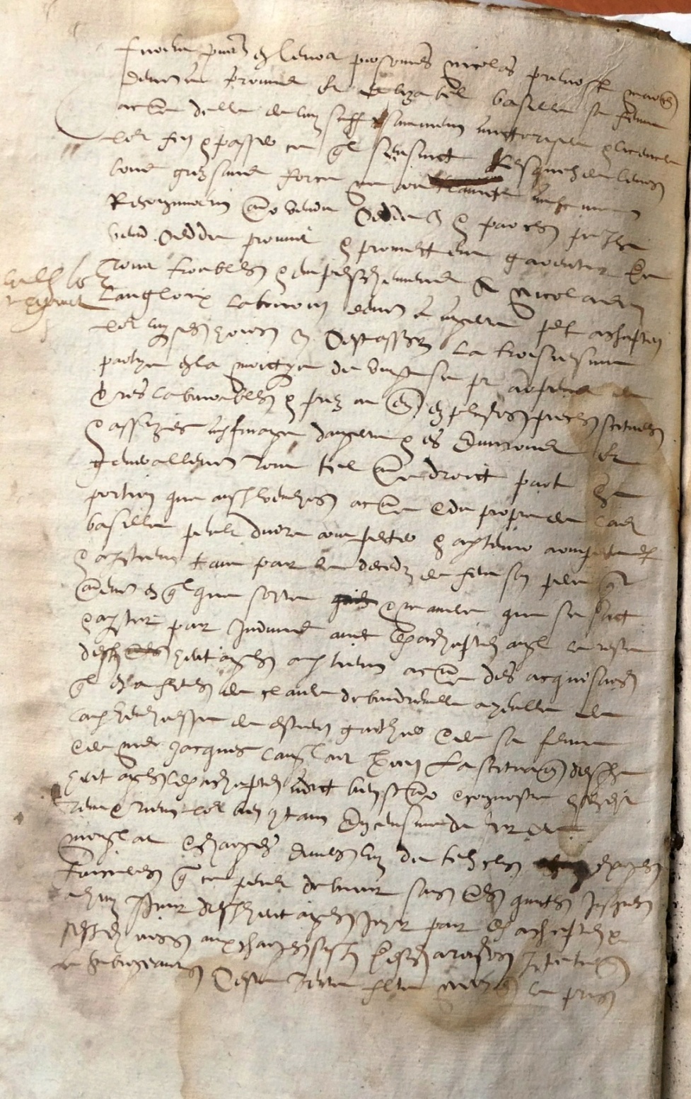 « Un petit livre de papier sur 9 feuillets duquel sont escripts les prests qui ont esté faits à plusieurs particuliers ainsi qu’il ensuit : 20 mai 1669 ledit deffunct Lancellot avoit presté au nommé Pierre Mignot de Sepveille 6 boisseaux de mestail mesure de Racle qu’il doibt rendre à pareille mesure – Au nommé Nicolas Ribost du Melz la Magdeleine (f°21 vue 676) le 15 dudit mois et an a esté presté 8 boisseaux de mestail à rendre en nature – Le 17 dudit mois a esté presté à Gabriel Goijat de Sepveille 4 boisseaux de mestail à rendre en nature – Le 22 dudit mois a esté presté encore audit Nicolas Ribost dudit Melz la Magdeleine 8 boisseaux mestail – Le 23 dudit mois jour et an a esté presté audit Pierre Mignot 6 boisseaux de mestail – Le mesme jour a esté presté à Pierre Camuset demeurant à (blanc) 8 boisseaux de mestail mesure Main torse à raison de 12 sols le boisseau sur quoy il a fait des voyages et labourages – A esté encore presté 60 sols sur quoy et il a fait des voyages et labourages – Le 30 dudit mois a esté encore presté aidot Nicolas Ribost du Melz la Magdeleine 8 boisseaux mestail – Le mesme jour et an a esté encore presté audit Gabriel Goijat 4 boisseaux de mestail – le 5 juin audit an a esté presté à Pasquier Hatton demeurant à Sepveille 3 boisseaux froment et 3 boisseaux mestail – Le 6 juin a esté presté à Simon Pigot de Sepveille 6 boisseaux de mestail main torse à raison de 12 sols le boisseau – Sur quoy a esté receu 30 sols le 28 – Le 18 juin a esté presté au nommé Charles Baudin de Sepveille 3 boisseaus mestail – Le 10 juin a esté presté à la veufve Gabriel Boucher 5 boisseaux mestail (f°22 vue 677) – Le 11 dudit mois de juin a esté presté audit Nicolas Ribost 8 boisseaux mestail – Ledit 11 juin a esté presté audit Pierre Mignot 6 boisseaux mestail – Le 13 juin a esté presté audit Gabriel Gorjat 4 boisseaux de mestail – Le 15 juin a esté presté à Henry Larivière de Sepveille 5 boisseaux de mestail – Le 17 dudit mois de juin a esté presté audit Pasquer Hatton 6 boisseaux de grain et 3 de froment et 3 de mestail – Le 18 dudit mois a esté presté à la veufve Gabriel Boucher demeurant au Melz la Magdeleine un boisseau de mestail – Ledit jour 18 juin a esté presté audit Nicolas Ribost 8 boisseaux de mestail y compris 2 boisseaux donnés à son vacher par son ordre et son acquit – Le 20 juin a esté presté à Jean Blondeau de Sepveille 4 boisseaux de mestail – Le 22 dudit mois de juin a esté presté à Maurice Baudin de Sepveille 3 boisseaux de mestail en l’acquit dudit Nicolas Ribost – Le 26 dudit mois de juin a esté presté à Michel Blondeau du Melz 8 boisseaux de grain scavoir 3 de froment et 5 de mestail y compris 3 boisseaux donnés en son acquit à son berger – Le 26 dudit mois de juin mesme jour et an a esté presté 2 boisseaux de mestail au berger du Melz la Magdeleine en l’acquit dudit Nicolas Ribost – Le mesme jour et an a esté presté 6 boisseaux de grain audit Pasquet Hatton scavoir (f°23 vue 678) 3 de froment et 3 de mestail – Le 27 dudit mois a esté presté audit Nicolas Rebost 8 boisseaux de mestail – Le 28 dudit mois de juin a esté presté audit Simon Pigot de Sepveille 4 boisseaux de grain scavoir 2 de froment et 2 de mestail – Le 29 dudit mois a esté presté à ladite veufve Gabriel Boucher du Melz la Magdeleine 2 boisseaux de mestail – Ledit jour 29 juin a esté presté à Nicolas Jeubert du Melz la Magdeleine 4 boisseaux de mestail de main torse à raison de 12 sols chascun boisseau – Le 1er juillet a esté presté à Michel Blandeau 2 boisseaux de mestail pour donner à son vacher – Le 4 juillet a esté presté audit Nicolas Ribison 8 boisseaux scavoir 3 de froment et 5 de mestail – Ledit jour 4 juillet a esté presté ausit Pasquirt Hatton 6 boisseaux de froment – Le mesme jour 4 juillet a esté presté à Jean Jacquenin 2 boisseaux de mestail – Le 8 juillet a esté presté audit Simon Pigot 4 boisseaux de mestail – Le 10 juillet a esté presté audit Michel Blondeau 8 boisseaux de grain scavoir 3 de froment et 5 de mestail – Le 11 juillet a esté encore presté audit Pierre Mignot un boisseau de mestail – Ledit jour 11 juillet a esté encore presté audit Pasquier Hatton 6 boisseaux de grain scavoir 4 de froment et 2 de mestail – (f°24 vue 679) Le 14,dudit mois de juillet a esté encore presté audit Nicolas Rebost 8 boisseaux de grain dont 3 de froment et 5 de mestail – Le 19 dudit mois a esté presté à ladit veufe Gabriel Boucher un boisseau de mestail – Le 22 dudit mois a esté presté audit Jean Blondeau 4 boisseaux de grain scavoir 2 de froment et 2 de mestail – Le 29 dudit mois a esté presté à Croisette femme demeurant au Melz un boisseau de mestail – A Charles Chappottot de Sepveille un boisseau de mestail main torse franc moulu de 12 sols – Le 30 juillet a esté presté à la veufve Billot du Melz un boisseau de mestail mai, torse franc moulu de 12 sols – Le 12 aoust a esté presté à la veufve Perné 6 boisseaux de bled froment et un de mestail – Le 23 avril 1670 a esté encore presté audit Gabriel Gorjat 4 boisseau de mestail – Au nommé Perné de Sepveille un boisseau de mestail à raison de 12 sols – Le 2 mai a esté presté à Potantien Blanot de Sepveille 4 boisseaux de mestail à 12 sols chascun – Le 9 mai a esté presté à Jacques Jorré de Sepveille 5 boisseaux de mestail – Le 17 mai encore audit Jorré 6 boisseaux de mestail – Le 19 mai a esté presté audit Potentien Blanot 4 boisseaux de mestail à (f°25 vue 680) 13 sols le boisseau franc moulu main torse – Audit Jean Blondeau 2 boisseaux de mestail à raison de 12 sols le boisseau – Le 21 juin a eté presté audit Patientien Blanot 4 boisseaux (f°25 vue 680) de mestail à raison de 13 sols le boisseau – Le 26 juin a esté presté à la veufve Jacques Fromont 2 boisseaux de mestail – Le 3