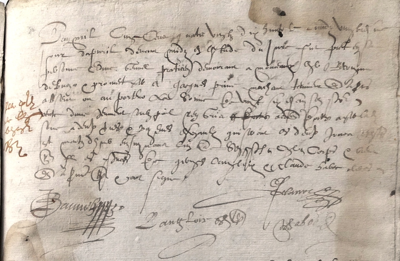 « Un petit livre couvert de parchemin sur 14 feuillets duquel sont escripts plusieurs mémoires et entre autres de quelques grains prestés à quelques particuliers de payements faictz à la thaille etc… »