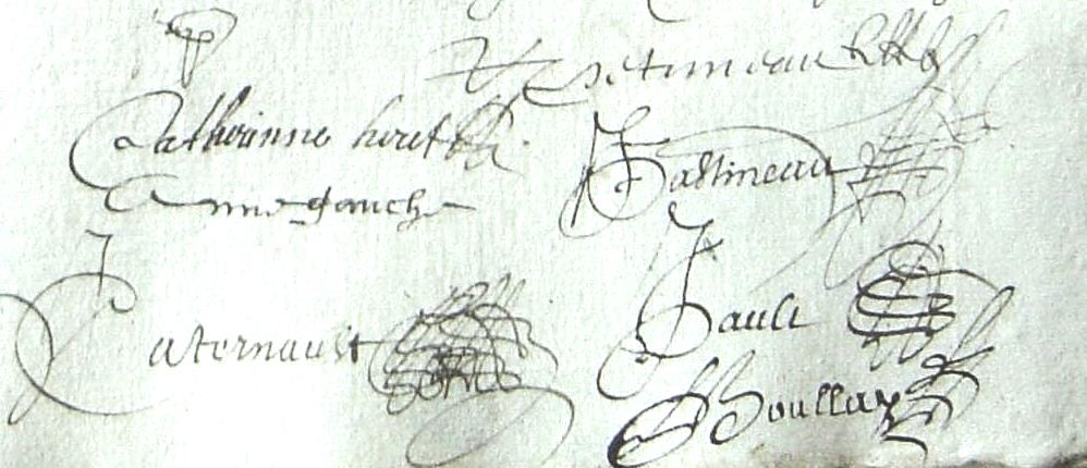 Vous allez aussi oberver les signatures et surtout constater que Catherine Hiret savait signer comme sa mère Catherine Fouin, et je suis toujours très heureuse de voir les signatures si anciennes de quelques unes de mes ancêtres, car les femmes qui savaient alors signer étaient plutôt rares, et rassurez-vous je descends comme tous d’une majorité de femmes ne sachant pas signer, et j’ai uniquement quelques branches où la culture des femmes existait.